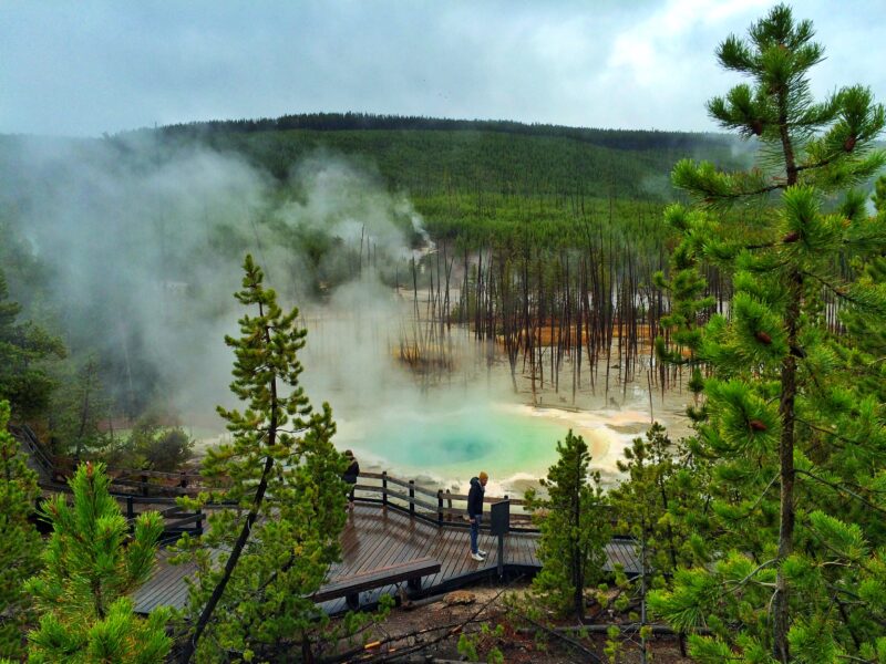 Beide parken zijn adembenemend op hun eigen manier. In Grand Teton zien we het bos in felle herfstkleuren en valt de eerste sneeuw als we op de camping staan. En altijd zie je het decor van de grillige bergketen de Tetons, waar het park zijn naam aan te danken heeft. In Yellowstone is het drukker. We zien touringcars vol met Aziatische toeristen. Maar we begrijpen het met de indrukwekkende thermische bezienswaardigheden. We zien kokend water borrelen en geisers spuiten. Een waterval die door een kloof raast. Een onherbergzaam maanlandschap lijkt het. Het is ook zo groot dat je de hordes toeristen ook al snel ontloopt.