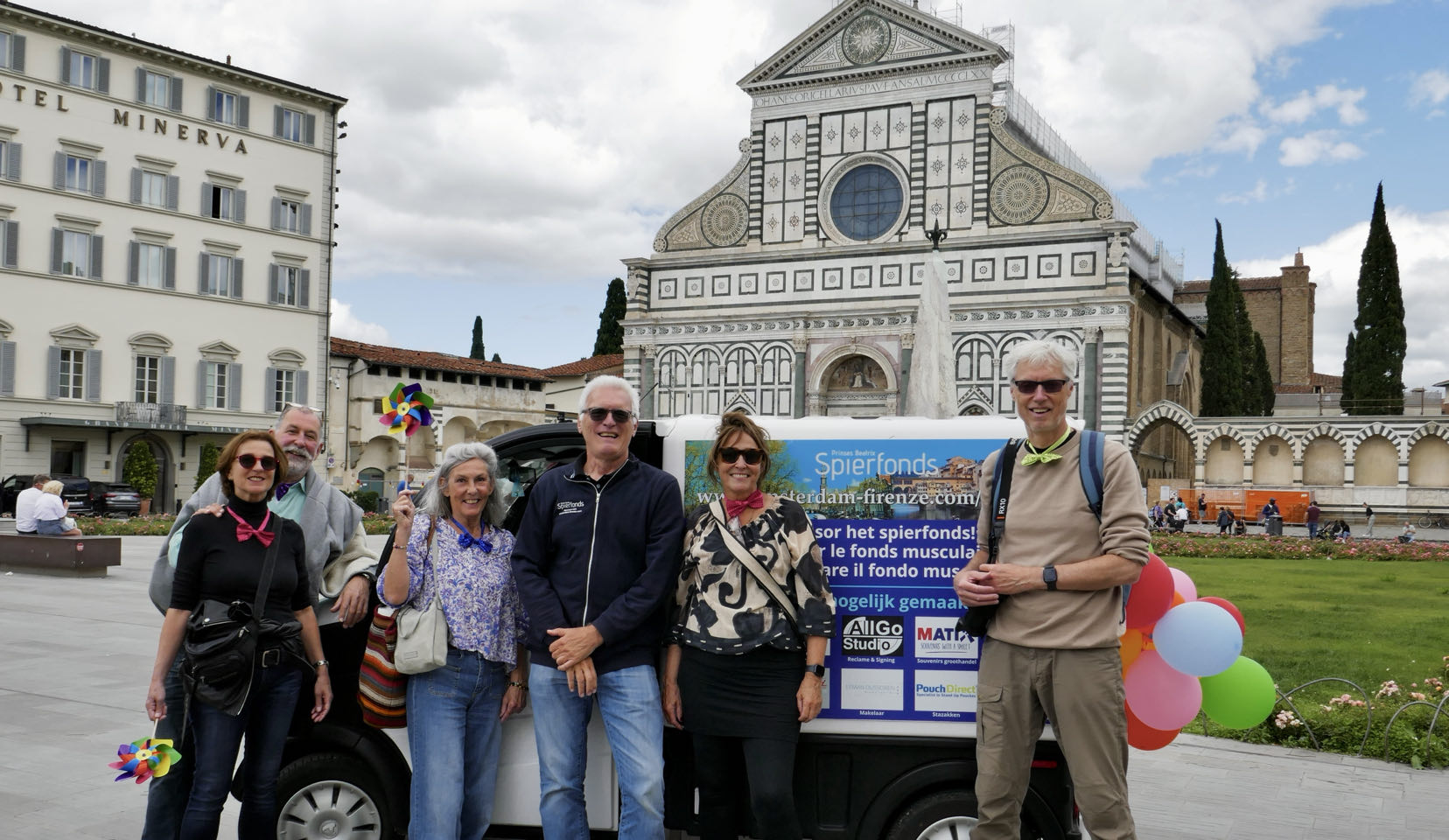 Rudy Keijzer in Firenze te midden van het ontvangstcomité van echtgenote en vrienden.
